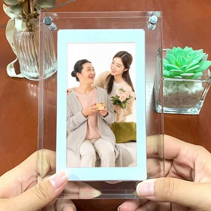 Este portaretrato digital no solo destaca por su diseño moderno y elegante, sino también por su facilidad de uso y funcionalidad. Con su pantalla de alta definición y batería recargable, puedes disfrutar de tus recuerdos favoritos donde y cuando quieras, sin complicaciones técnicas. Es el detalle perfecto para regalar o para dar un toque personal a cualquier espacio.