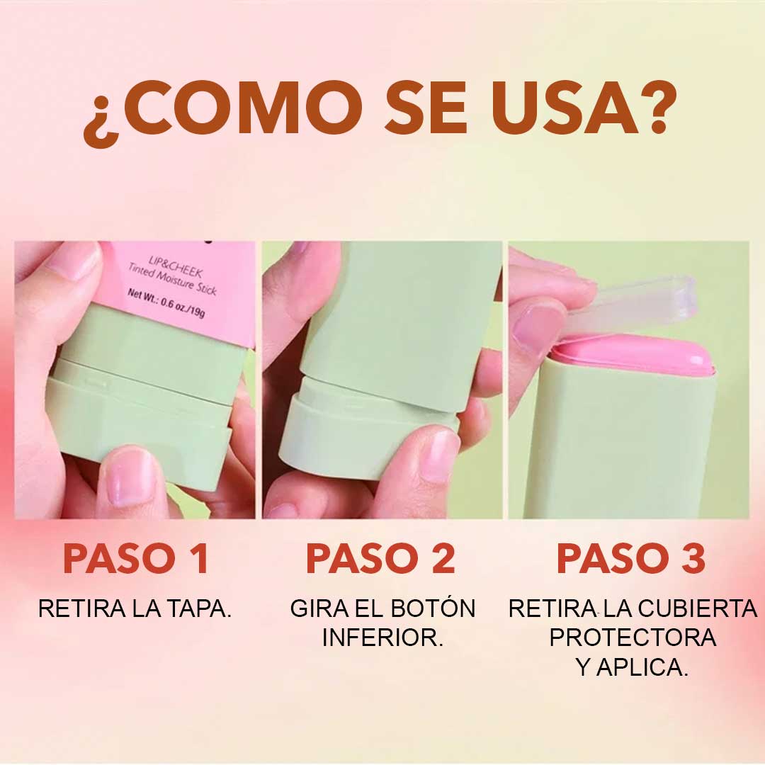 Aplica directamente en las mejillas, labios o párpados y difumina con los dedos, esponja o brocha para un acabado natural.